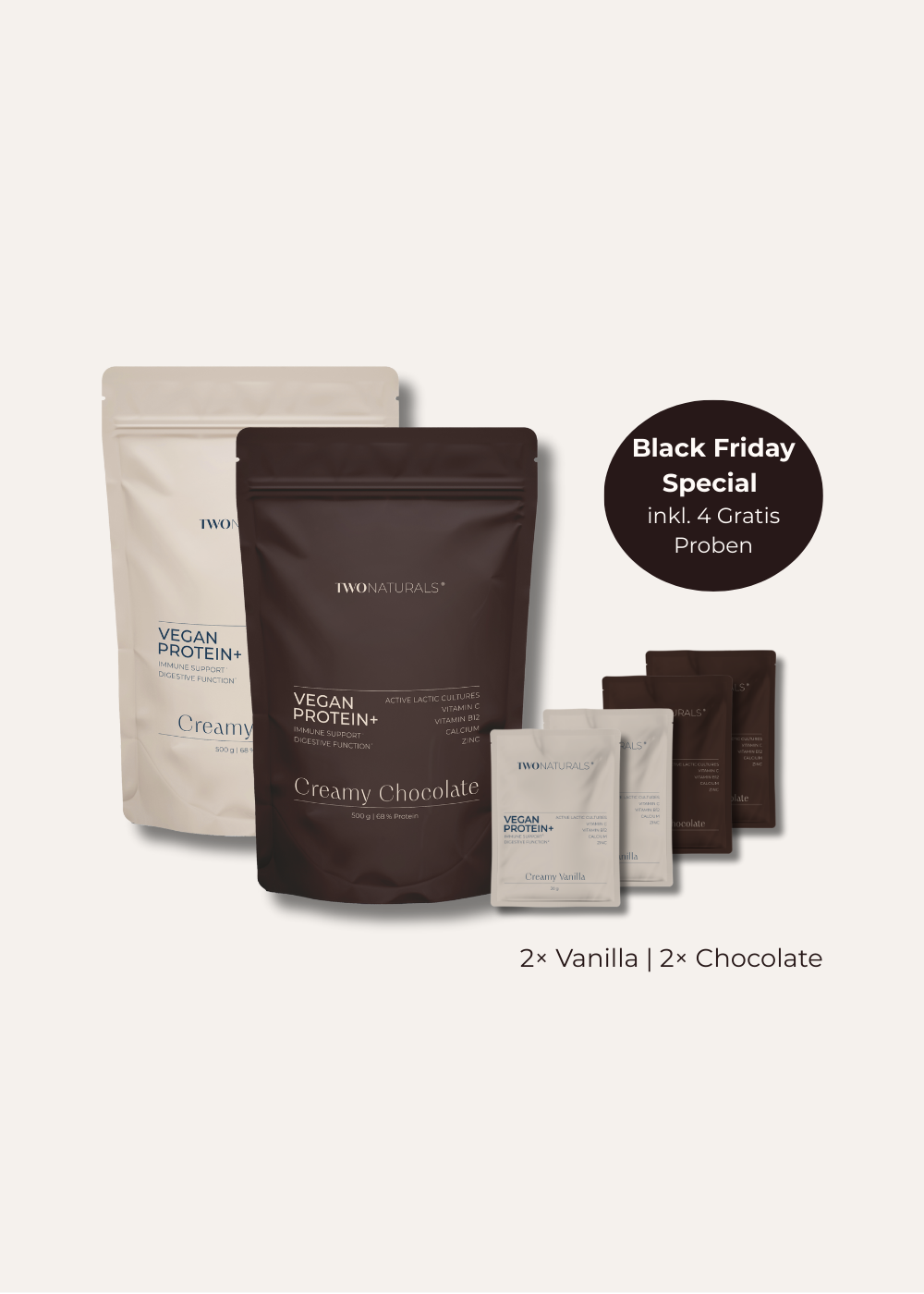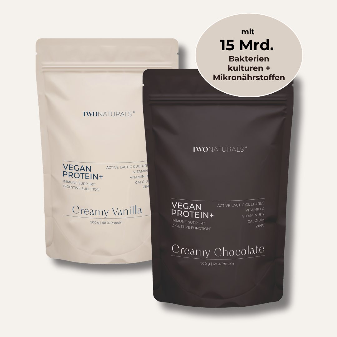 Mit 18 Milliarden lebenden Milchsäurebakterien – darunter Lactobacillus rhamnosus und Lactobacillus plantarum – ergänzt das Vegan Protein+ Deine tägliche Ernährung sinnvoll. Calcium trägt zur normalen Funktion von Verdauungsenzymen bei und unterstützt damit die natürliche Nährstoffverwertung.