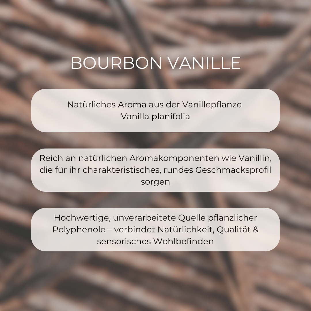 In der Sorte Creamy Vanilla sorgt echte Bourbon-Vanille für einen mild-aromatischen Geschmack – ganz ohne Zuckerzusatz oder künstliche Süßstoffe.