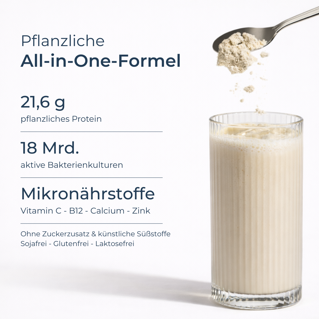 | ✓ Mit Vitaminen, Mineralstoffen & Milchsäurebakterien | ✗ Reine Eiweißzufuhr ohne ergänzende Funktion |