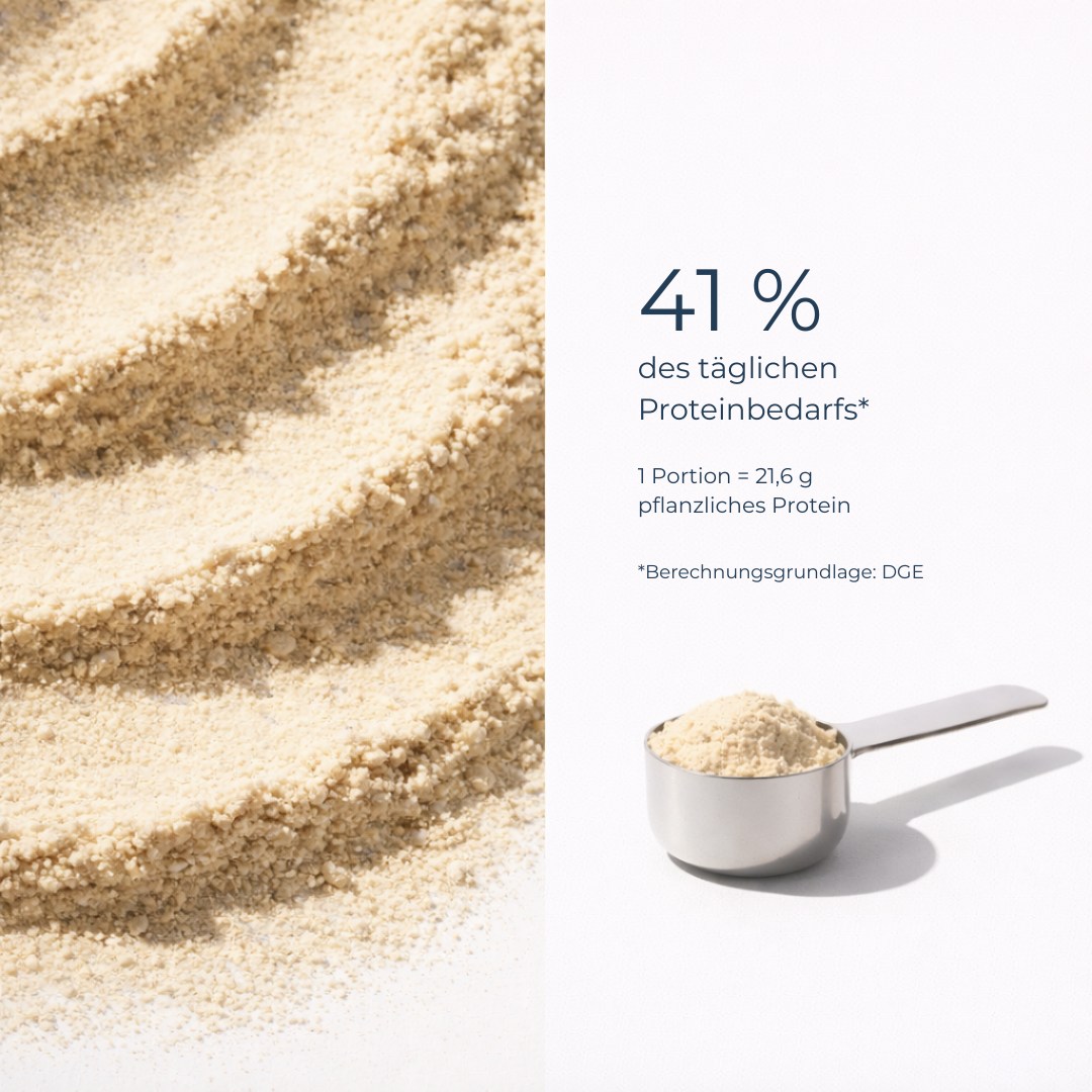 Es kombiniert hochwertige pflanzliche Proteine mit funktionellen Nährstoffen, die deinen Körper ganzheitlich unterstützen – für spürbare Energie, ein gutes Bauchgefühl und Balance im Alltag.
