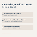 ¹ Proteine tragen zum Aufbau und Erhalt von Muskelmasse bei.² Calcium trägt zur normalen Funktion von Verdauungsenzymen bei.³ Vitamin C, B12 und Zink tragen zu einer normalen Funktion des Immunsystems bei.